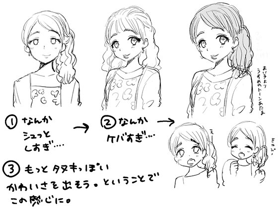 辻󠄀さんは初期案ではシュッとし過ぎで、ちょっと沢さん味(み)がありますね。