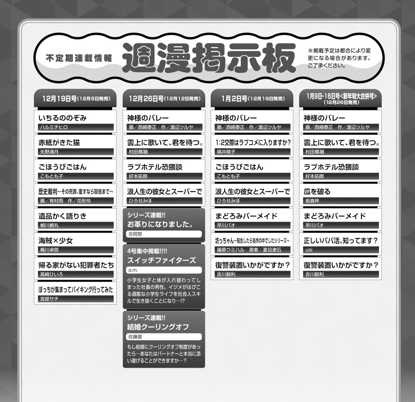 不定期連載掲載予定の内容を見る